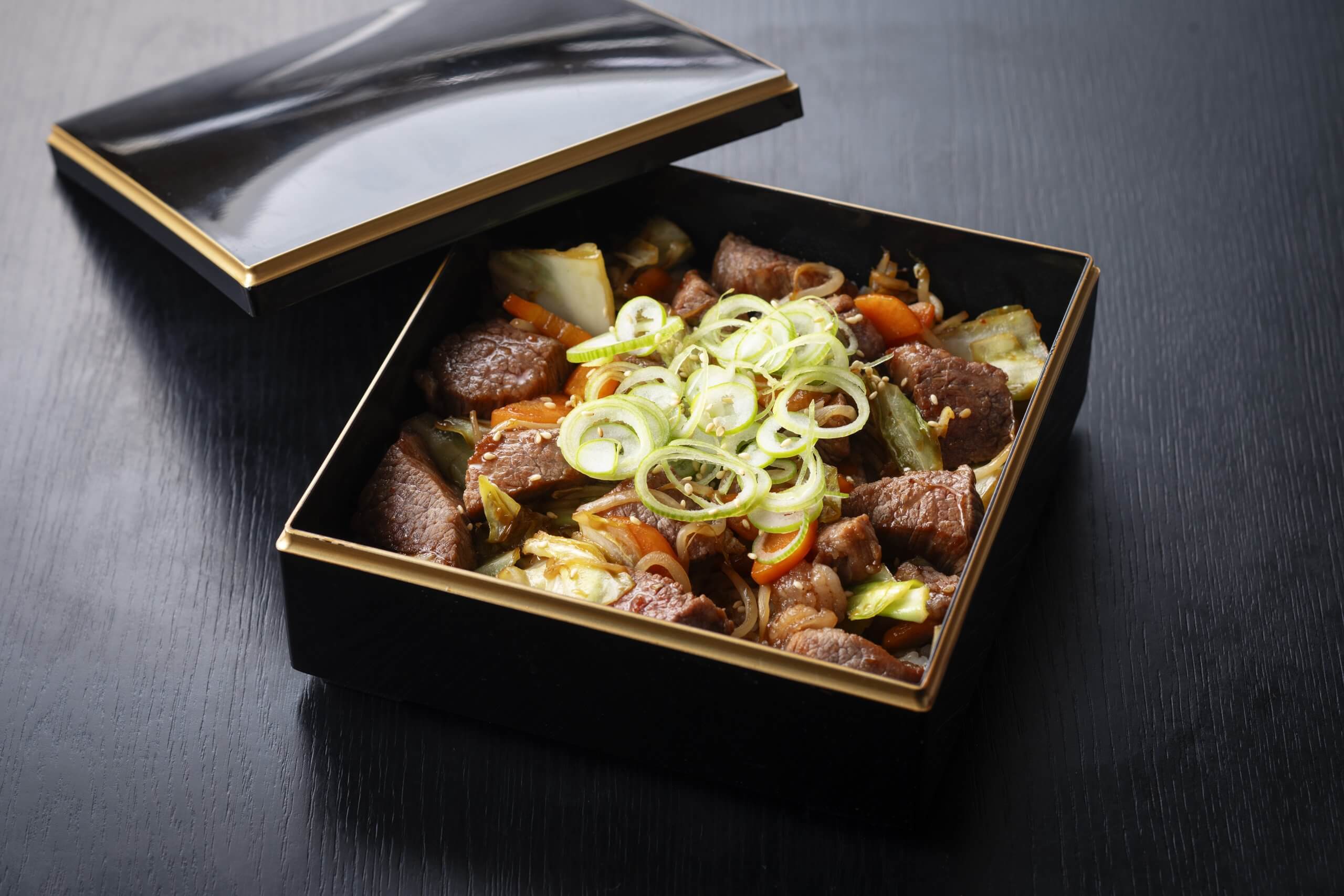 【黒毛和牛赤身レアステーキ重】1,800円