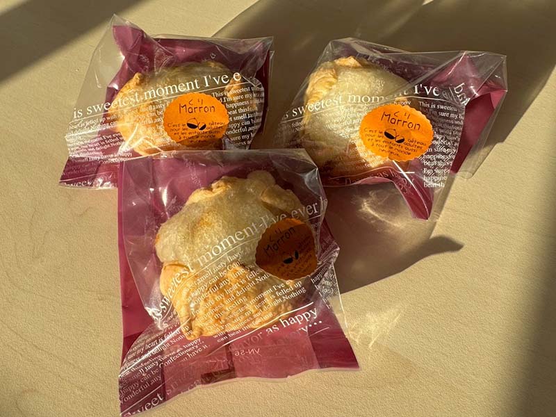 小林市須木産の和栗をふんだんに使用しております。マロンペーストにしたものを生地に混ぜ込み、栗本来の甘みを活かした仕上がりです。10月限定の商品となりますので、ぜひお楽しみください。