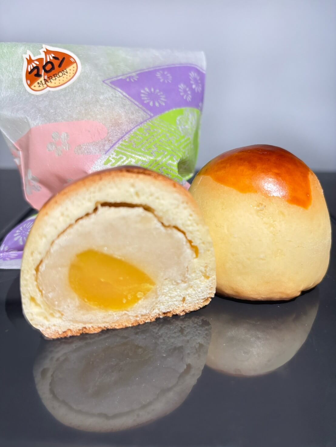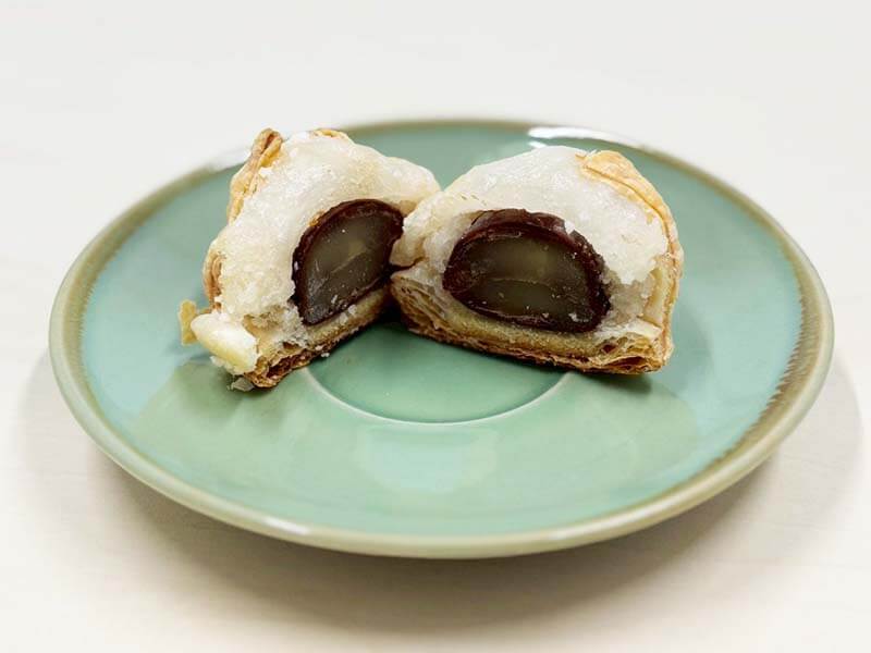 須木栗1粒を大福で包んだ後、自家製チリパイで包み、焼き上げました!
