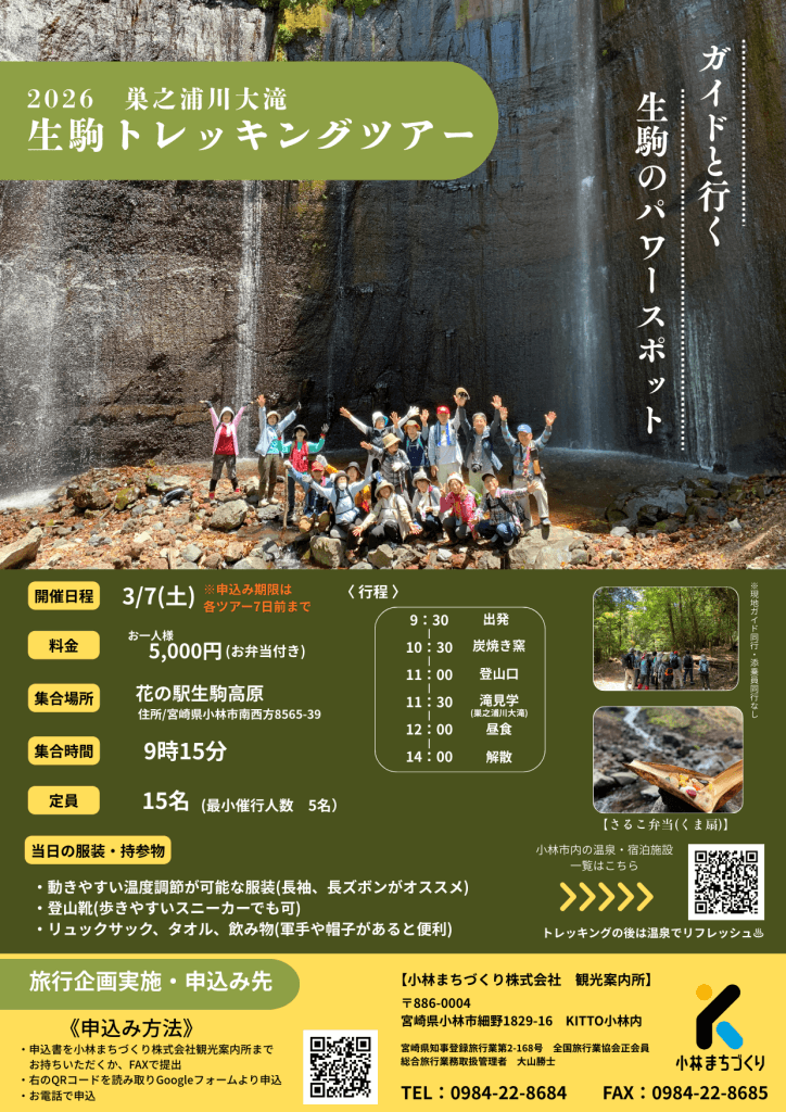 ・所定の申込書に必要事項をご記入の上、小林まちづくり(株)観光案内所までFAX又はメールにてお申込み下さい。 👉👉👉 ツアー参加申込書はこちら!